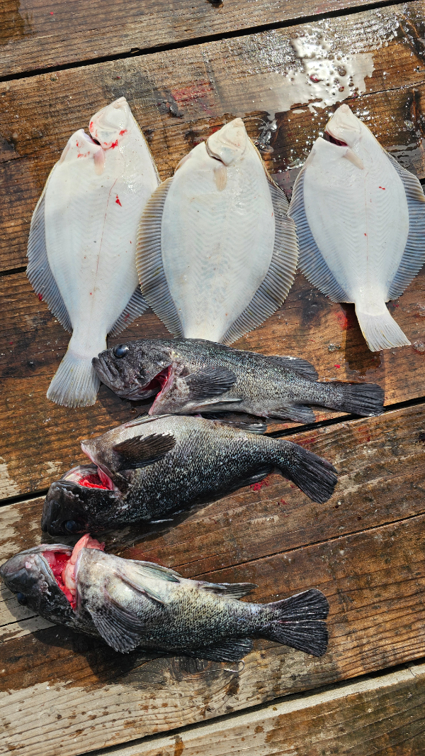 4자 도다리 얼굴 보였고, 우럭도 꾸준히 올라오는 있습니다.